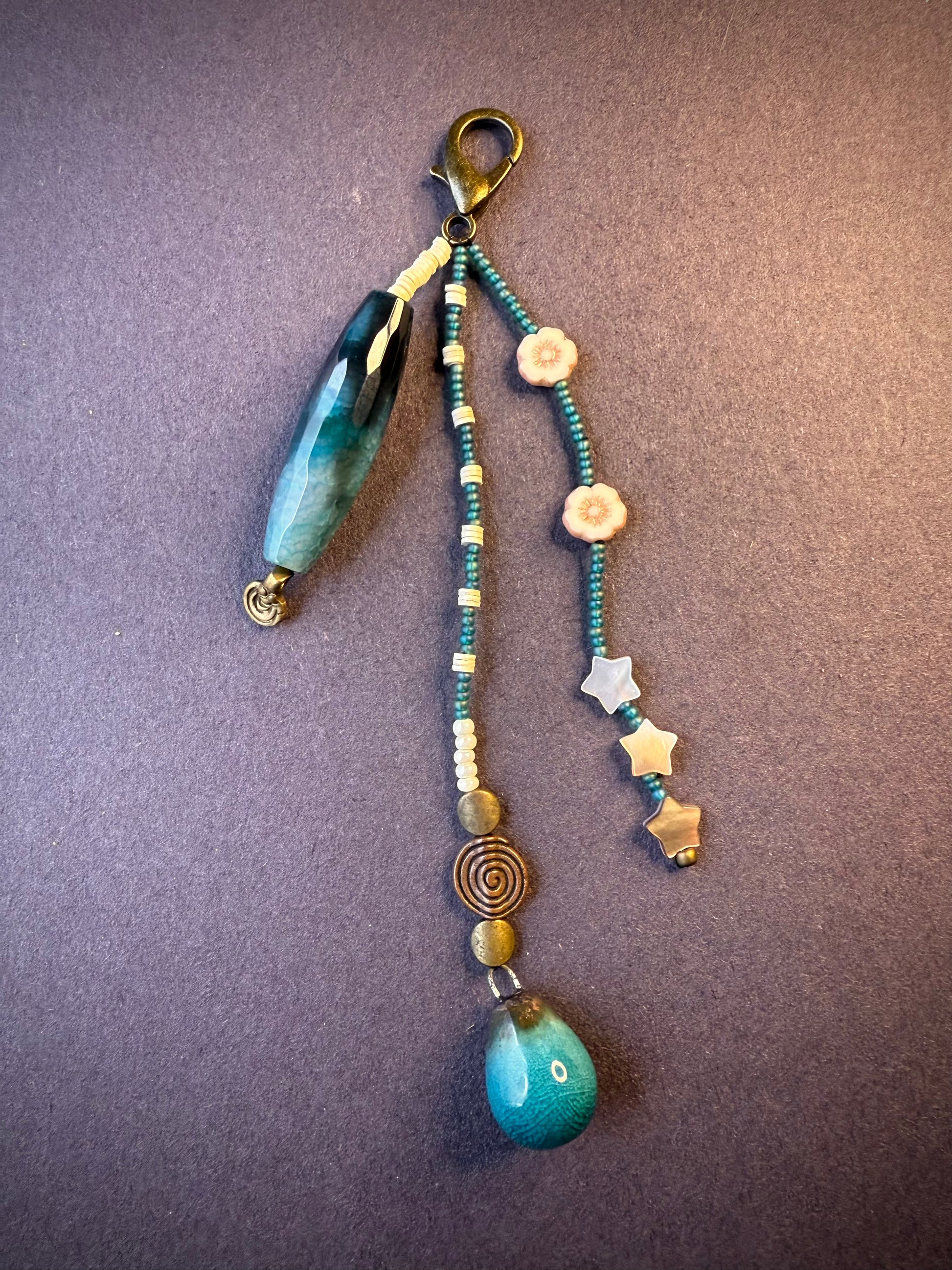 Two-toned agate | Handmade porcelain droplet | Antique bronze spirals and findings | Czech glass flowers | African bone