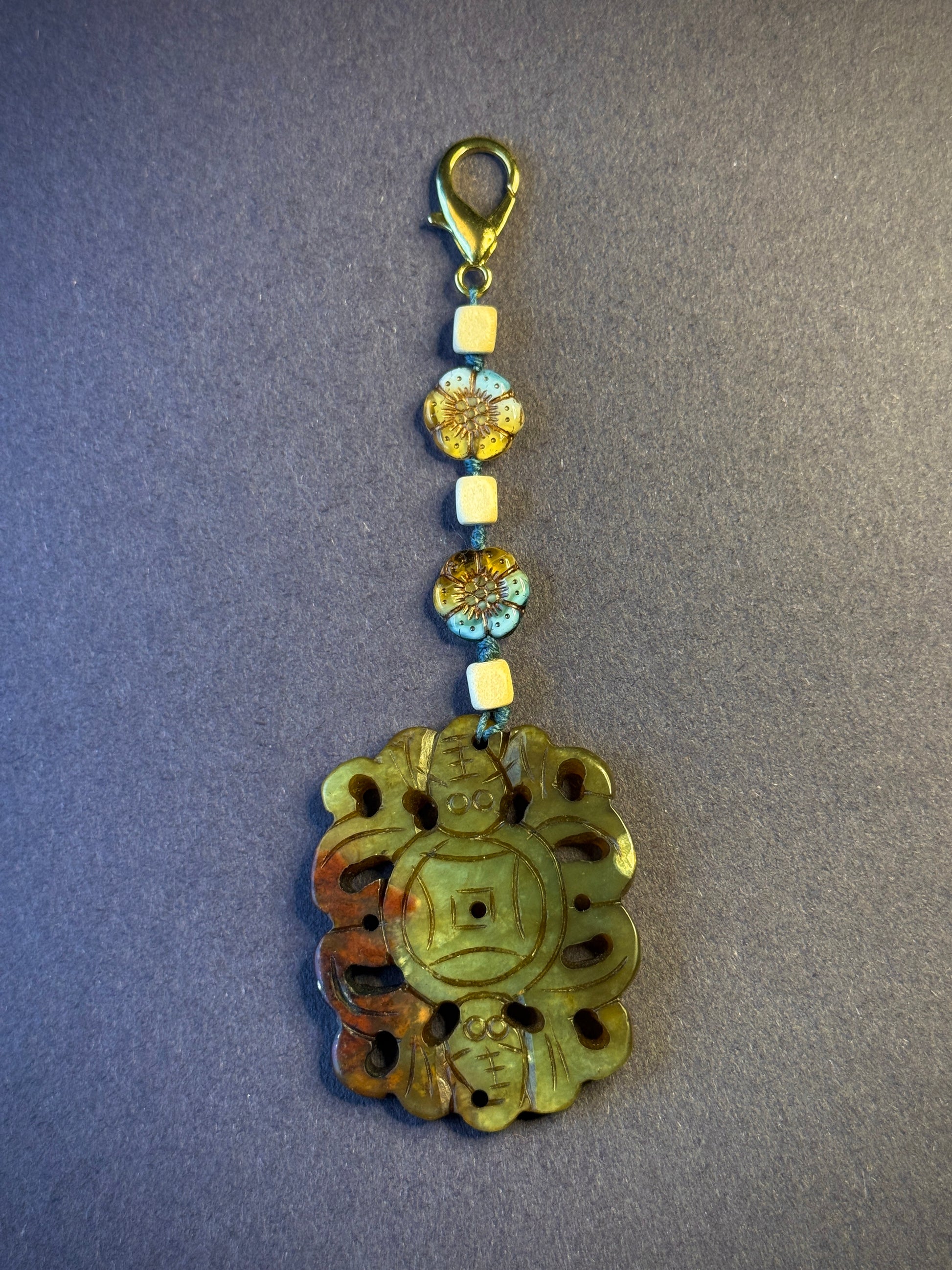 Vintage jade/jadeite pendant | Czech Glass | wood | antique brass hardware